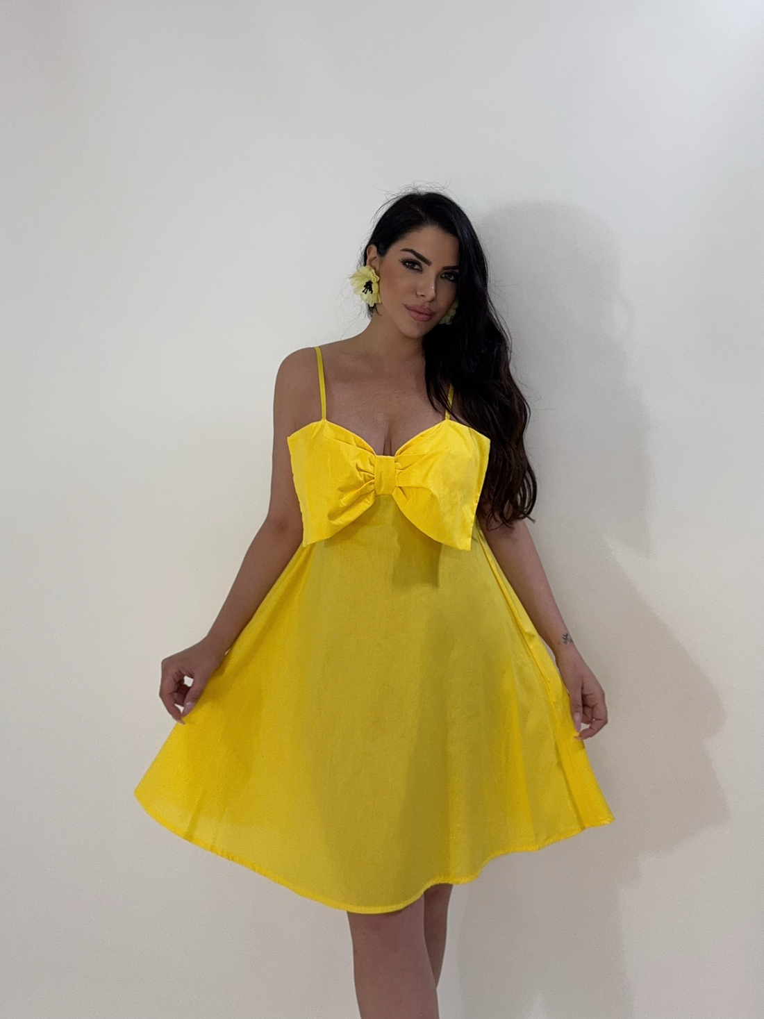 Abito longuette con drappeggi spalline e finto nodo “Virginia”