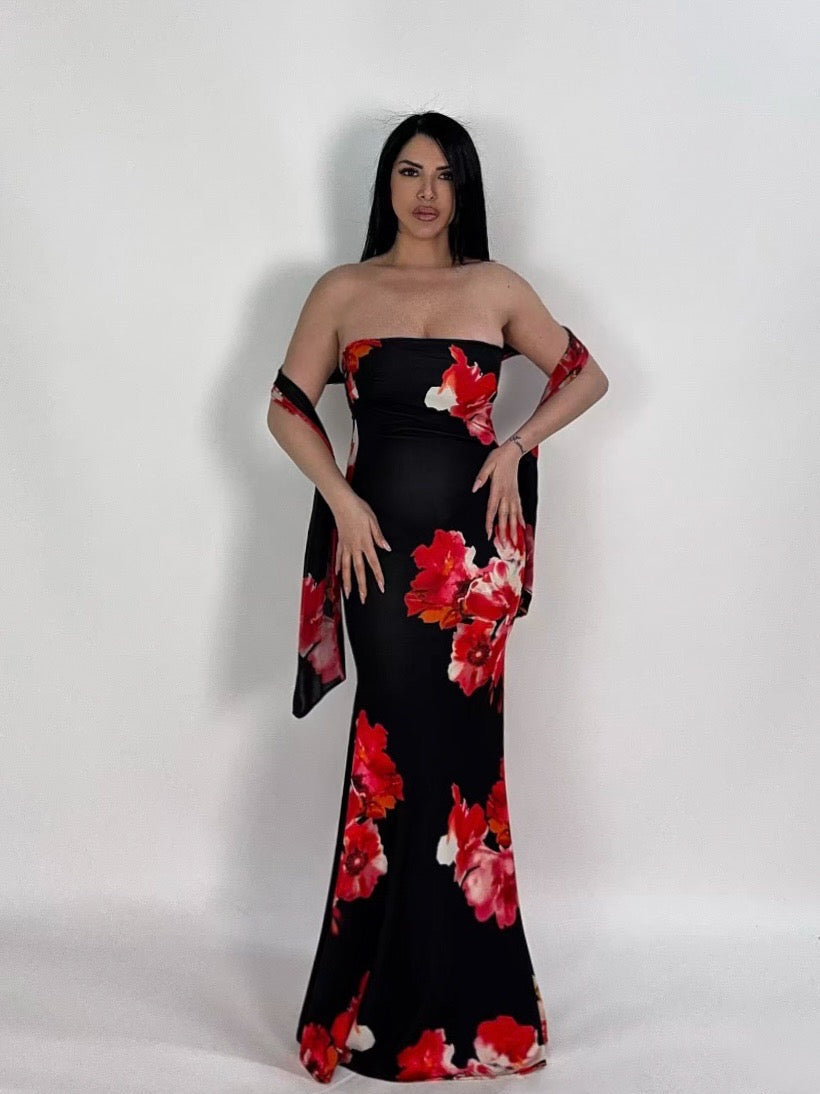 Abito a sirena con stola “Matilde”