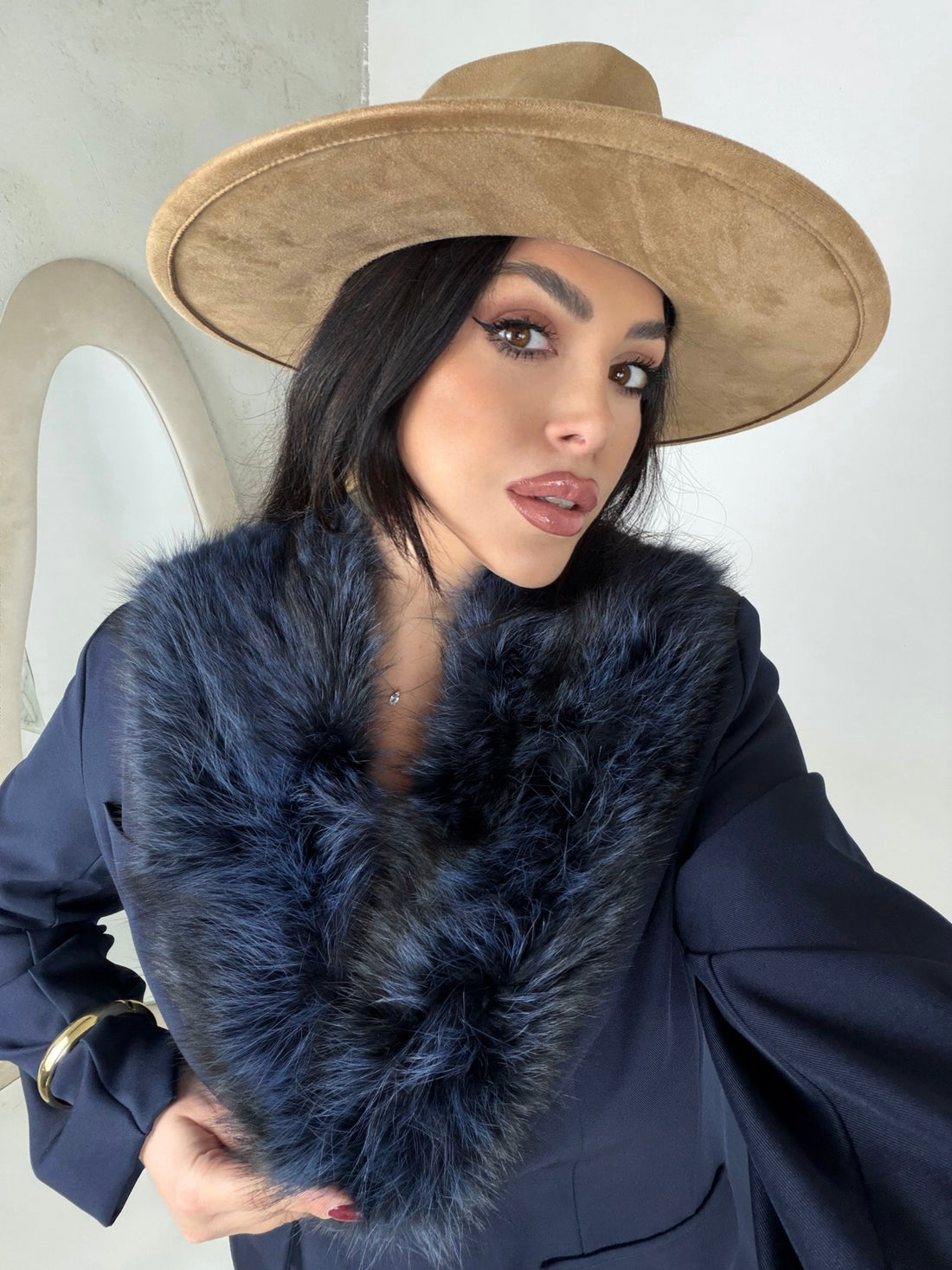 Collo in Vera pelliccia Blu Notte