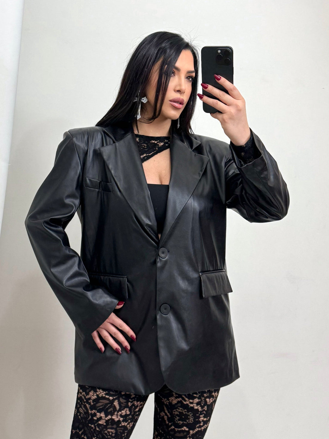 Giacca oversize in simil pelle “Emy”