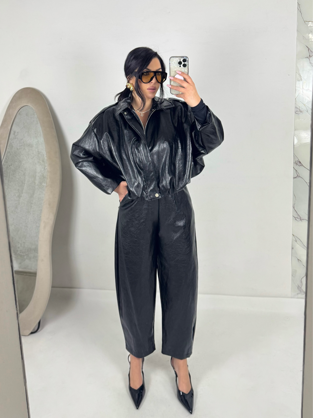 Giacca oversize in simil pelle “Emy”