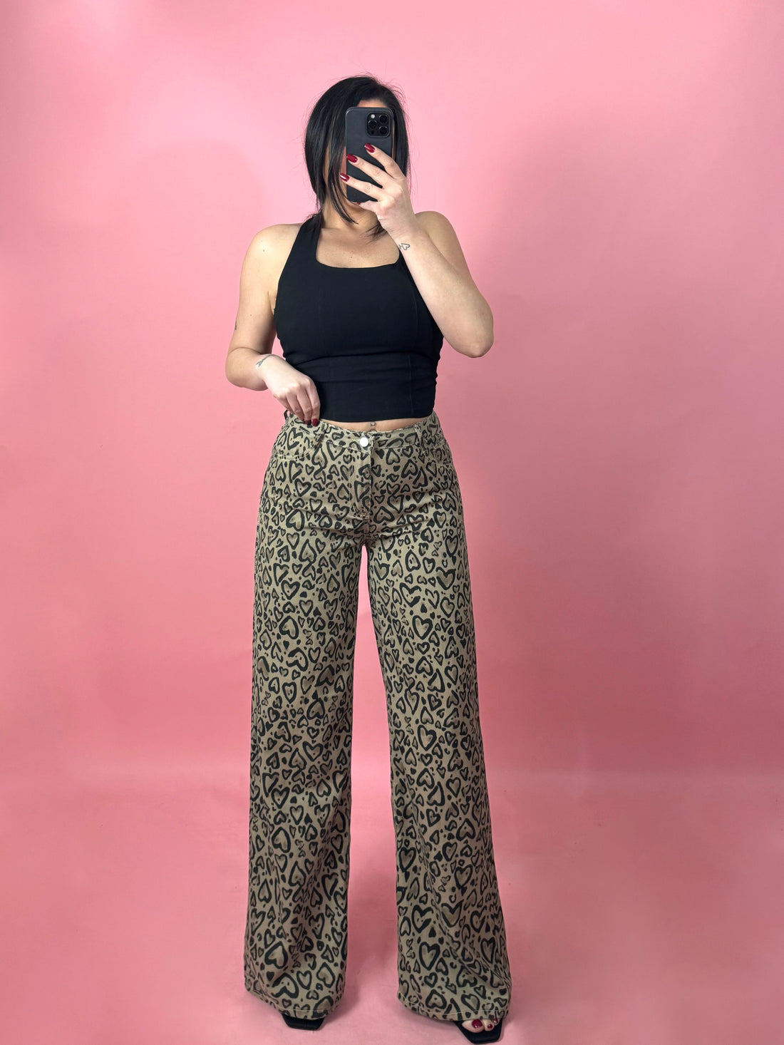 Jeans a palazzo in tela ferma con fantasia cuori “Heart”
