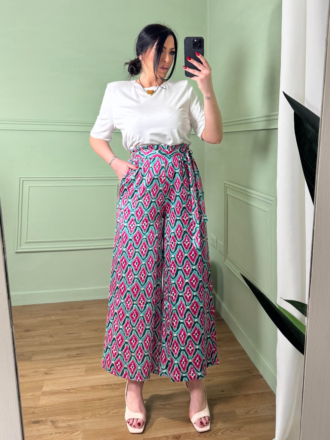 Pantaloni vita alta a palazzo “Kim”