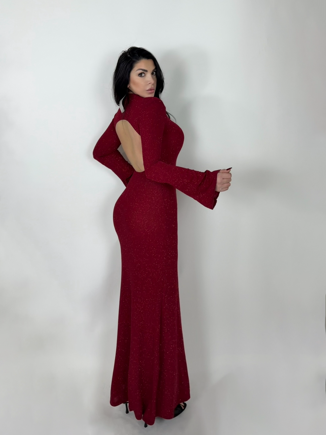 Abito lungo a sirena con scollo dietro “Seraphina”