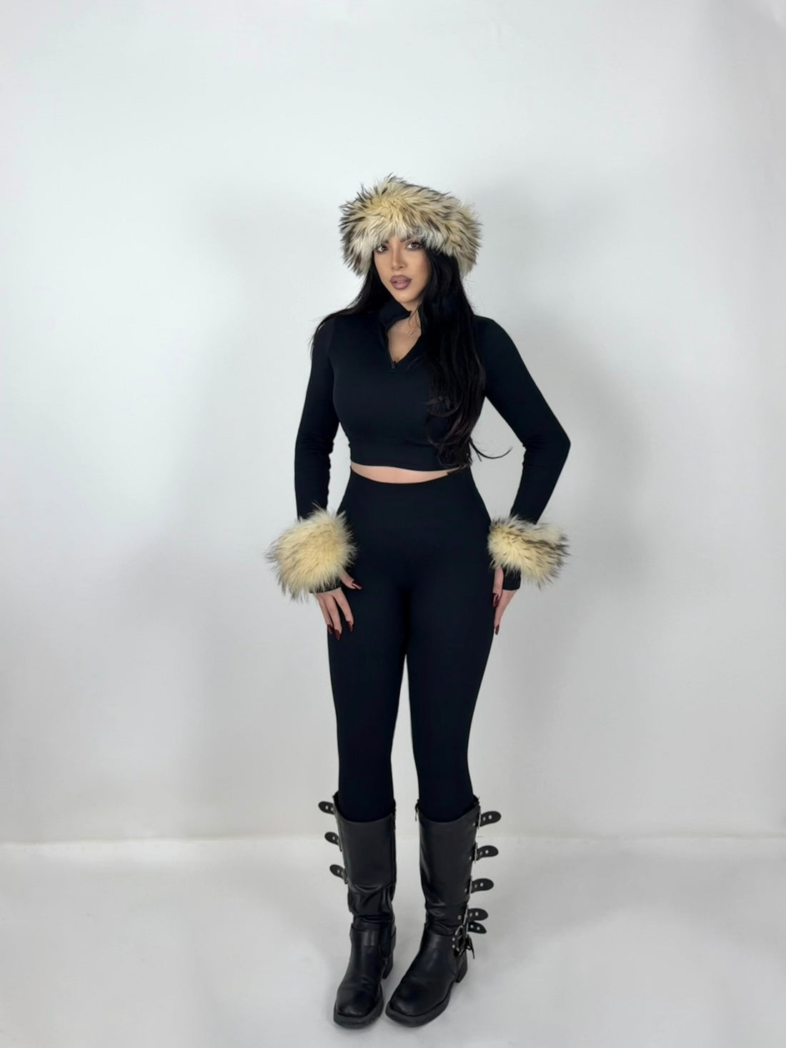 Coordinato in lana con dettagli in eco pelliccia “Bucarest”