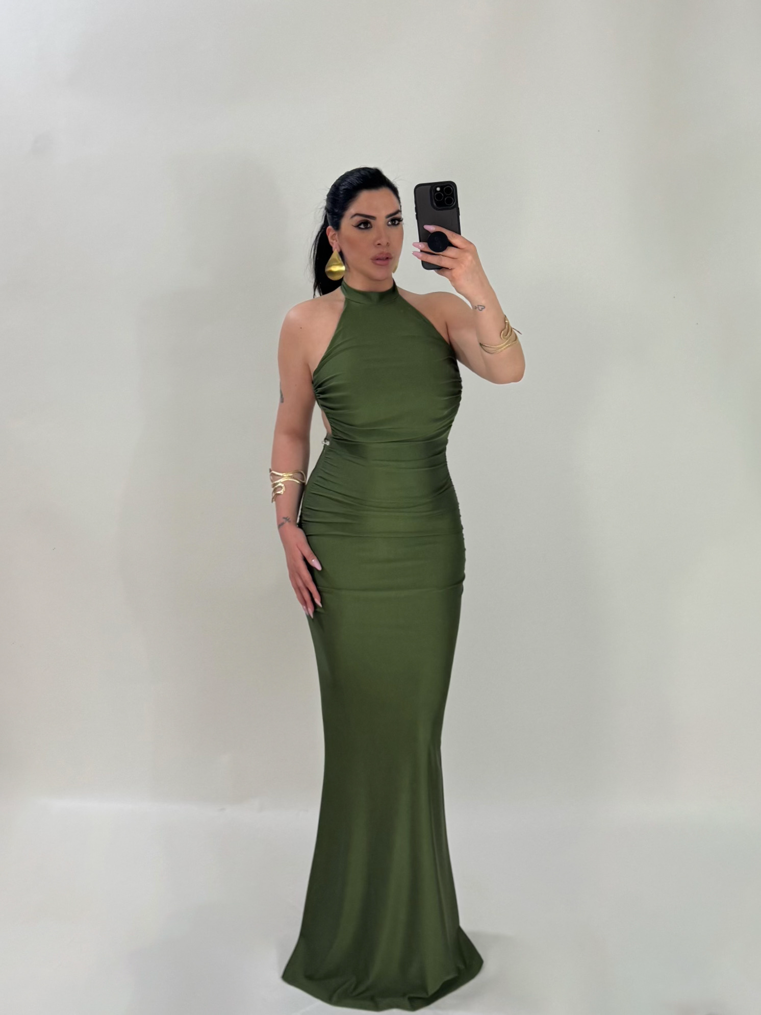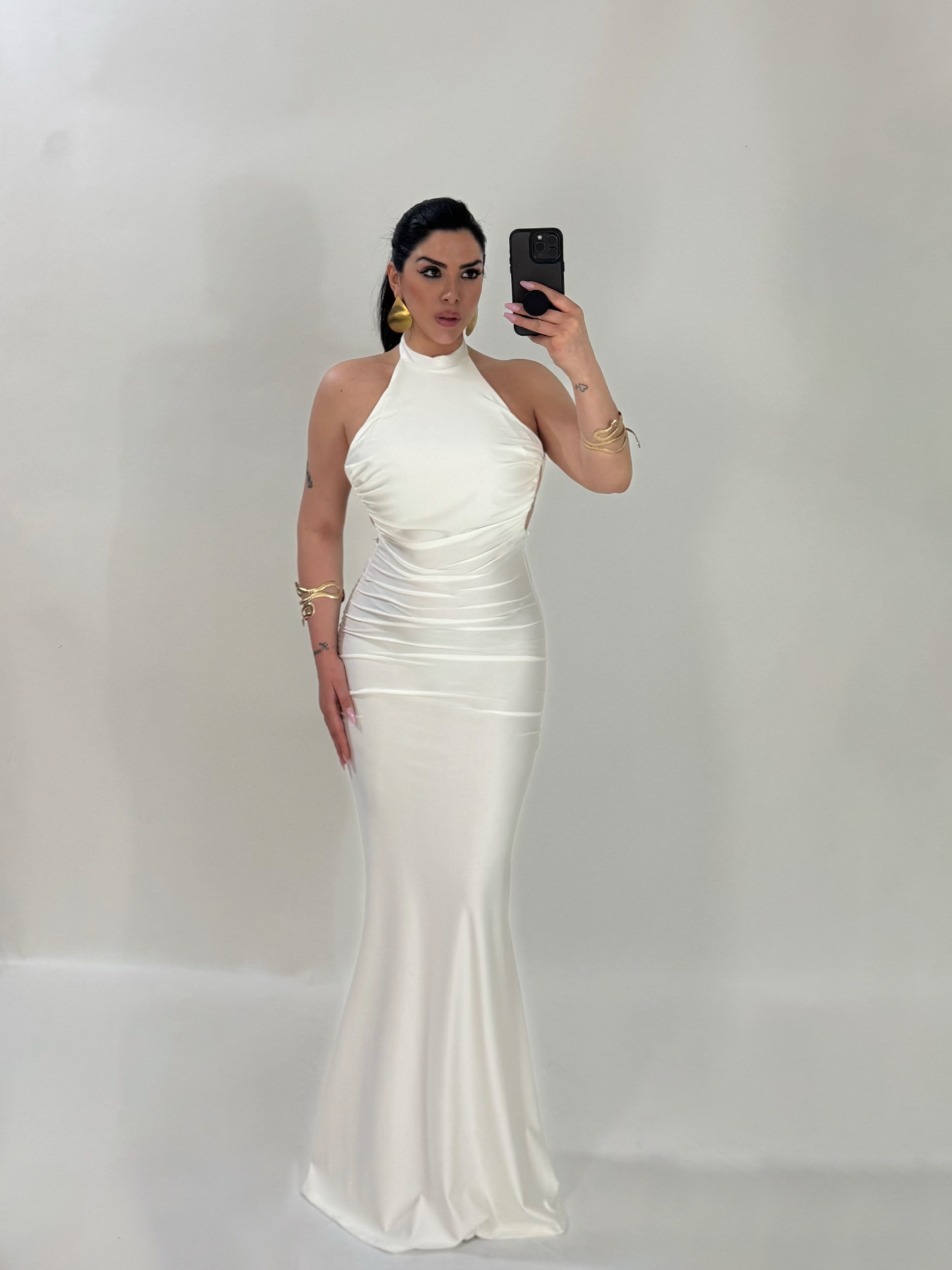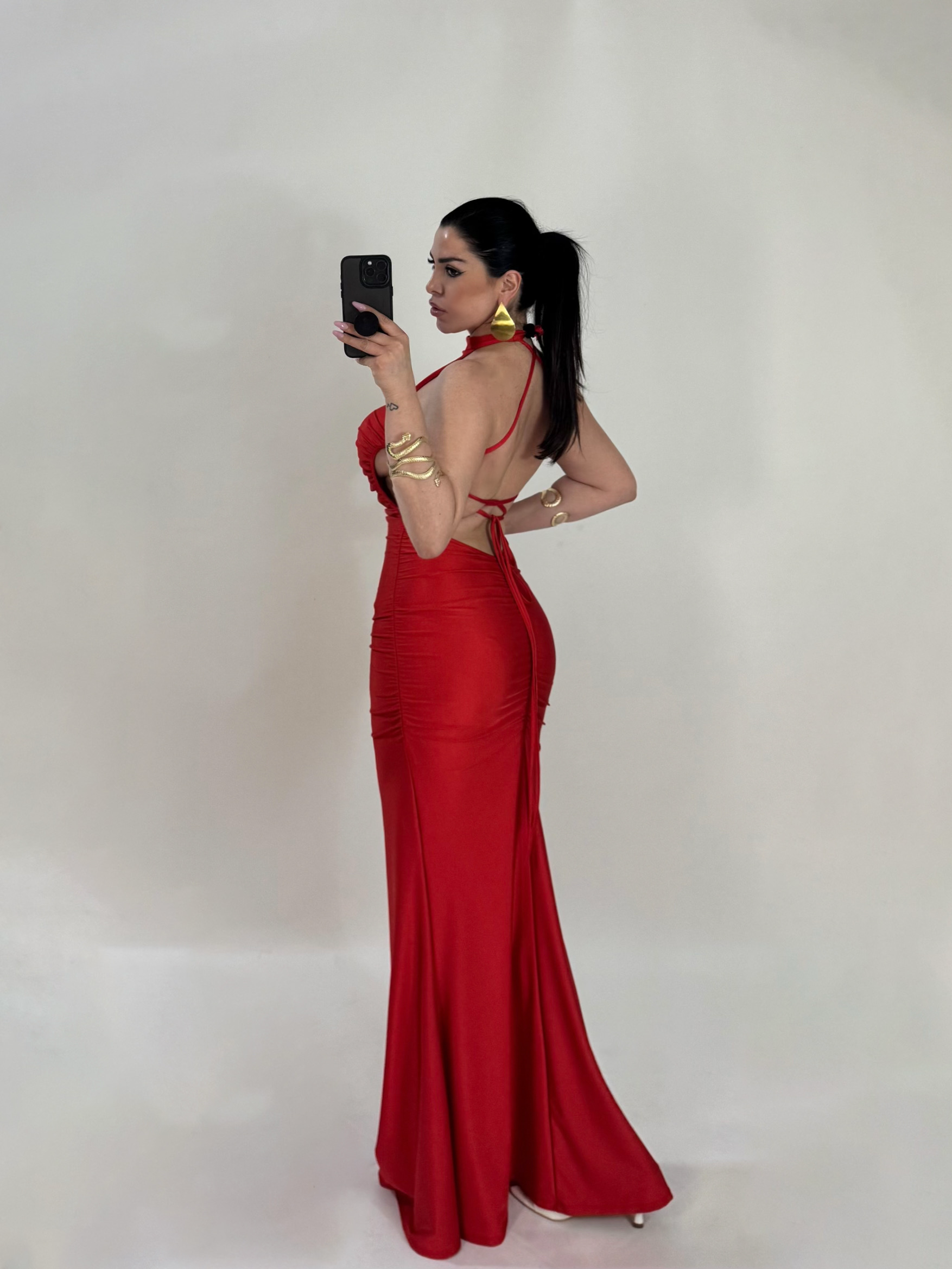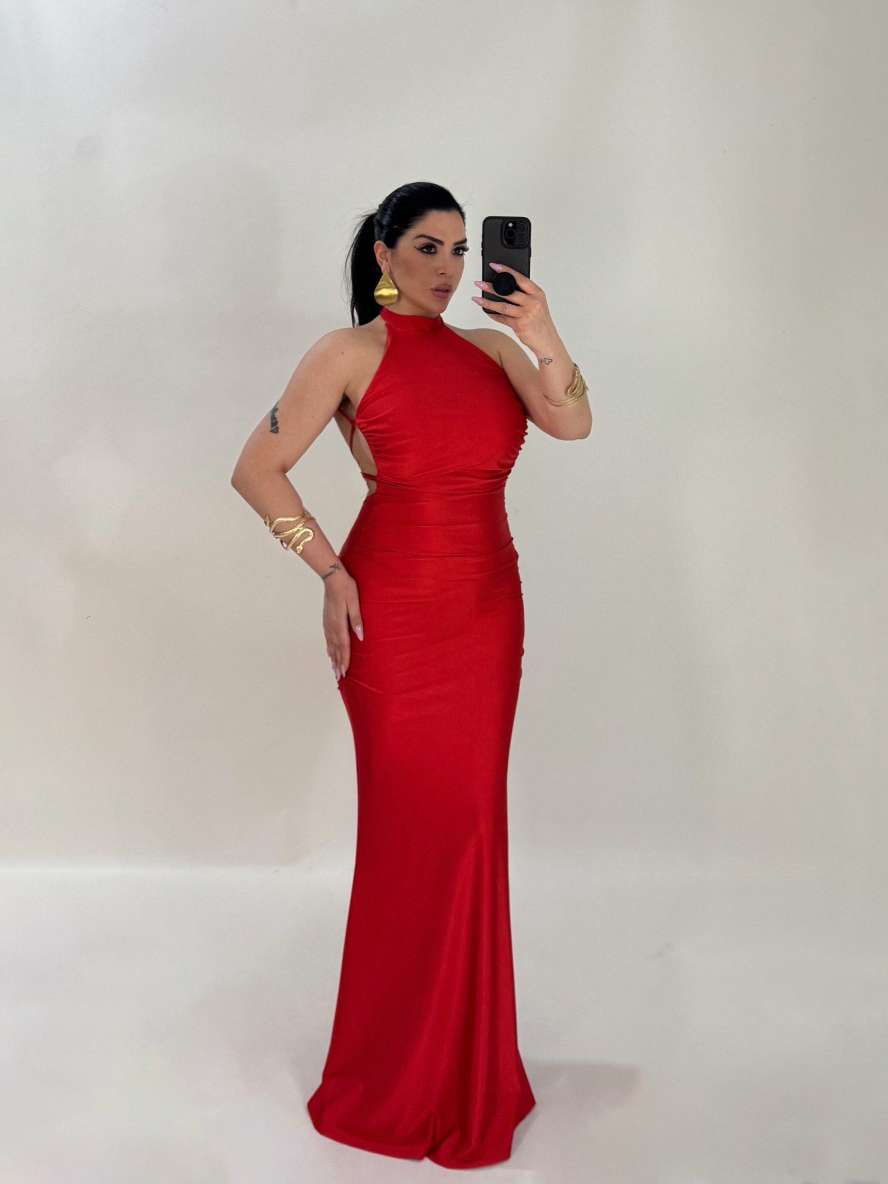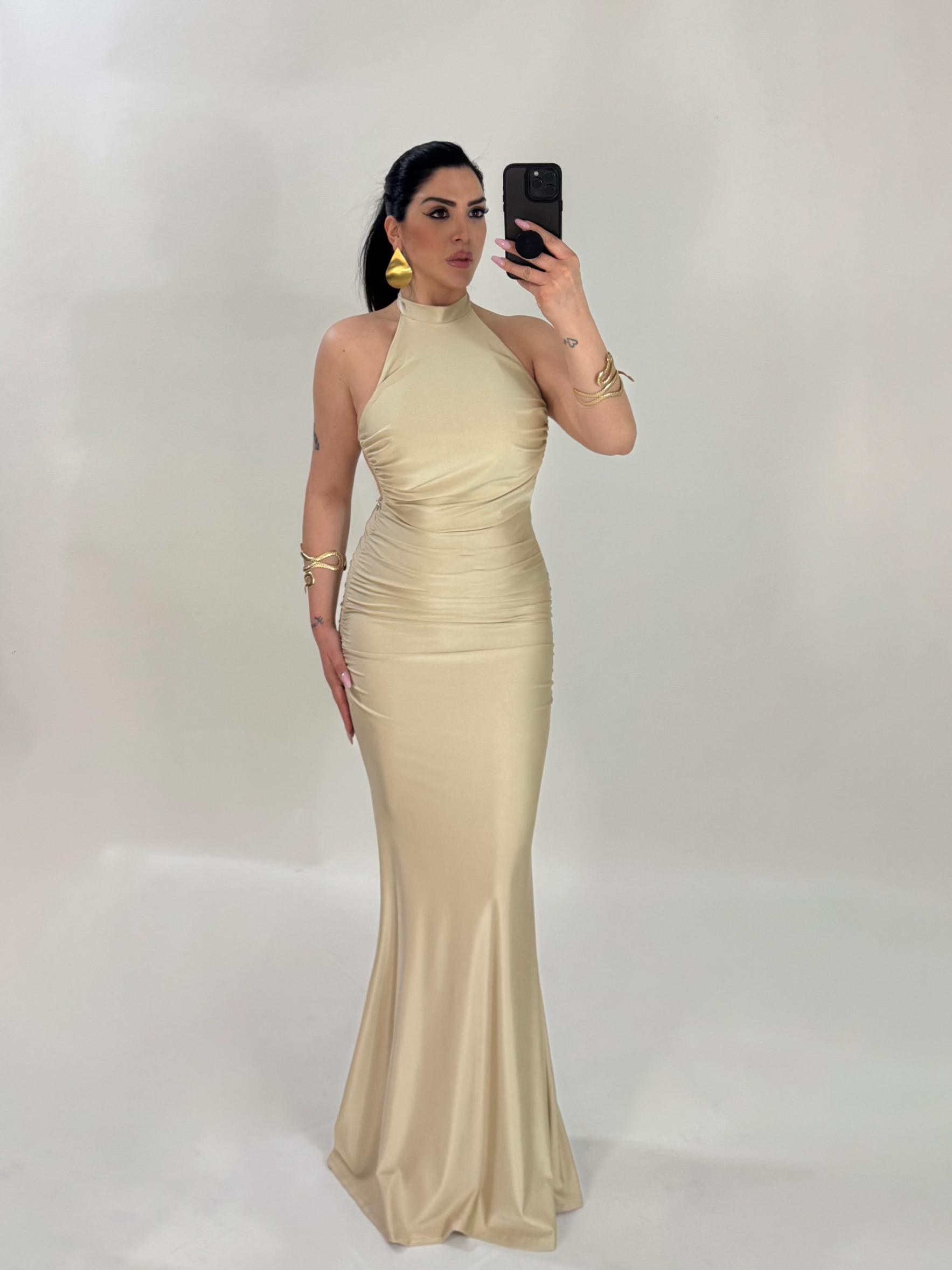 Abito lungo a sirena con scollo dietro “The Best”