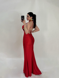Abito lungo a sirena con scollo dietro “Seraphina”